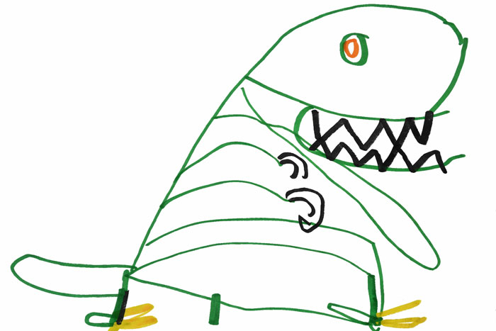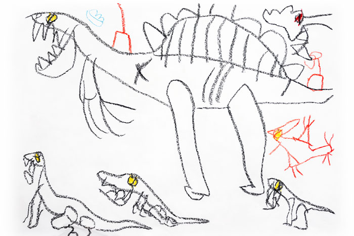 Sasha loves drawing dinosaurs and shows them to the AI.