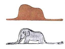 It shows a boa constrictor swallowing an elephant, but when he shows it to adults, they only see a hat.