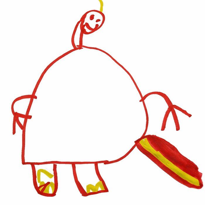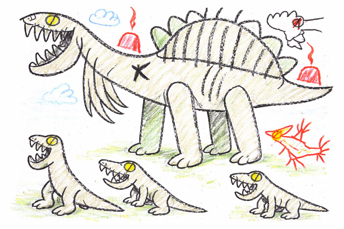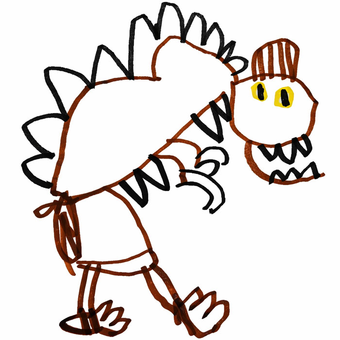 It learned from Sasha, and now it thinks a Stegosaurus looks like this!