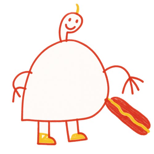 AI: This could be a happy robot or alien with a giant body and little head.